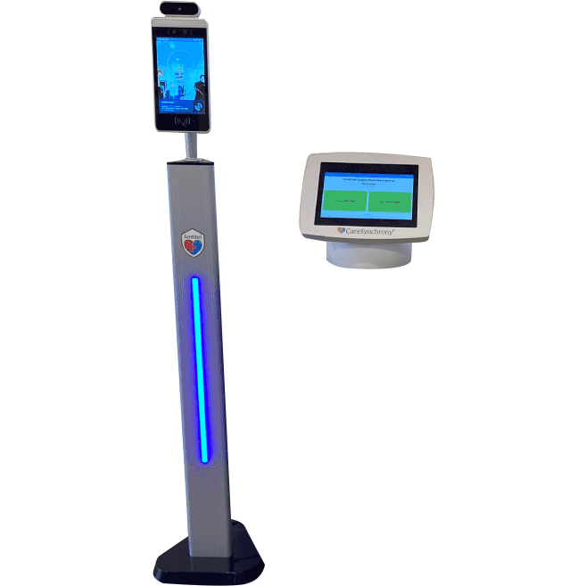 • Customizable health screening questionnaire on kiosk and app
